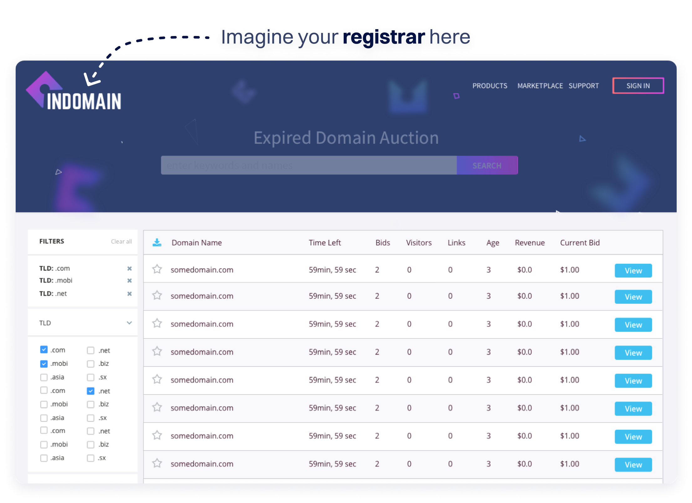 Allows registrars and registries to maximize their revenue and exposure of their expiring domains through our auction network.